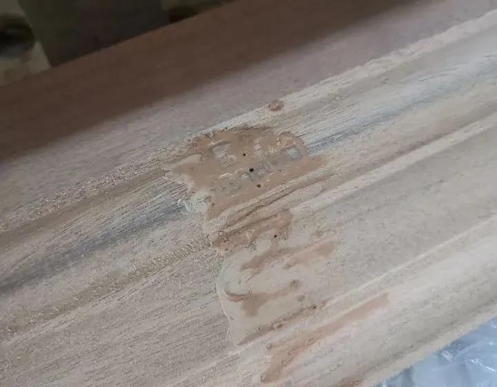 針對(duì)局部樹脂(油囊)的材料,可先用刀挖除油囊部位,再用同種材料(木紋方向應(yīng)一致)進(jìn)行填補(bǔ);如果不允許挖除,可用有機(jī)溶劑清洗,松節(jié)油、漆油、甲苯、丙酮等清洗,去掉油脂后,預(yù)防二次滲出,需要先做封固,再按工序進(jìn)行作業(yè)。