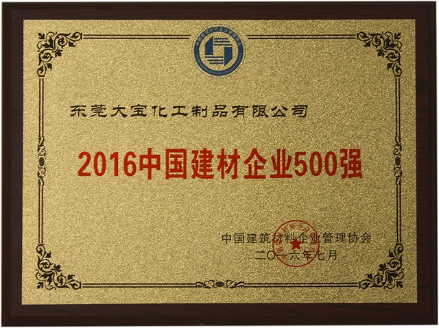 東莞大寶化工制品有限公司在中國建筑企業(yè)管理協(xié)會、中央國情調(diào)查委員會及焦點中國網(wǎng)的聯(lián)合評測中,榮獲“2016年中國建筑企業(yè)500強(qiáng)”榮譽(yù)獎項。