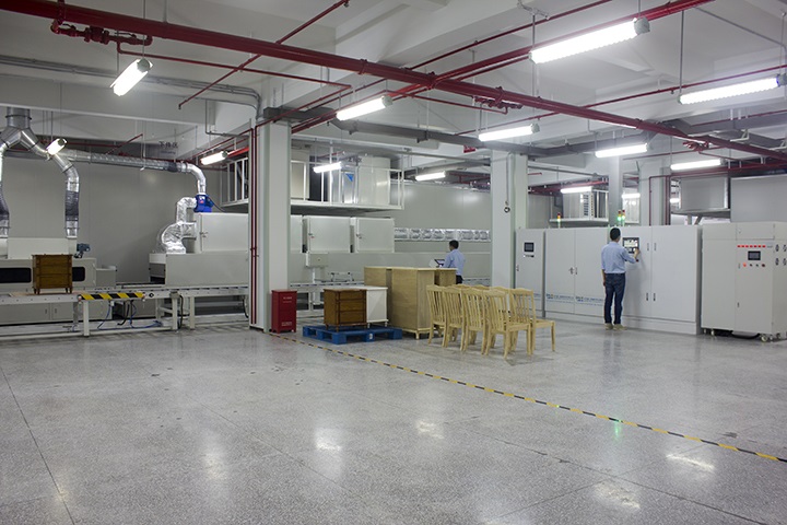 在國家與日俱增的環(huán)保政策要求之下,家具企業(yè)紛紛把“油改水”計劃提上了日程,眾所周知,油改水發(fā)展最大的瓶頸則在于水性涂料的干燥問題。有鑒于此,大寶漆特聯(lián)合中國科學院電子計算研究所,同時與設備供應廠商合作,采用前瞻技術(shù),歷時近3年,經(jīng)過反復的溝通、協(xié)調(diào)及試驗,以解決水性家具漆自動化生產(chǎn)所面臨的重要問題為突破,共同研發(fā)了擁有專利技術(shù)的全方位立體干燥設備系統(tǒng),并率先打造了我國涂料界首家大規(guī)模的智能化涂裝測試線。