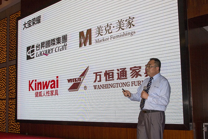 隨后大寶漆工程部培訓中心校長黃文敏向大會作主題為“大寶漆智能涂裝運營”的演講。黃校長在詳細介紹大寶漆智能涂裝測試線功能特點的同時,重點結(jié)合大寶水性木器漆產(chǎn)品特點講述了產(chǎn)品與涂裝設備間的配合關(guān)系,兩者相輔相成將會為家具行業(yè)“油改水”之需求作出生產(chǎn)變革。此外,演講還針對水性家具漆普遍存在的木材漲筋、浮色、干燥慢等六大重點、難點問題,分別給出了可靠而實用的解決方案,受到家具廠老板的高度關(guān)注。