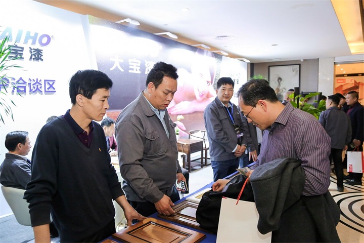 為促進(jìn)家具企業(yè)升級(jí),讓更多家具企業(yè)直觀的感受到大寶漆工藝效果,在現(xiàn)場(chǎng)大寶漆設(shè)立了展位,展示了大寶家具漆產(chǎn)品色板。環(huán)保轉(zhuǎn)型迫在眉睫,大寶漆涂裝黑科技樣板吸引著眾多家具企業(yè)前來(lái)咨詢洽談。
