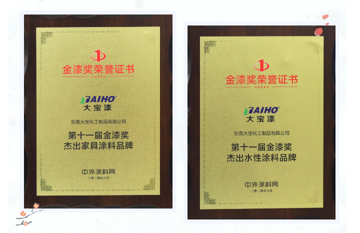 第十一屆金漆獎(jiǎng)?lì)C獎(jiǎng)盛典上,大寶漆一舉斬獲“杰出家具涂料品牌”、“杰出水性涂料品牌”等獎(jiǎng)項(xiàng)。