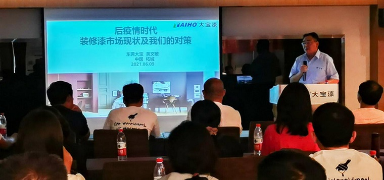 因黃課長自身參與了大部分新產(chǎn)品的規(guī)劃和驗證工作,體會深刻,細(xì)致入微,并且在沈陽協(xié)助當(dāng)?shù)亟?jīng)銷商操作裝修漆市場,所以產(chǎn)品的講解能結(jié)合到市場終端消費(fèi)者的關(guān)注點,專業(yè)精到,沁人心脾。新產(chǎn)品的推介獲得了與會經(jīng)銷商的肯定和歡迎。