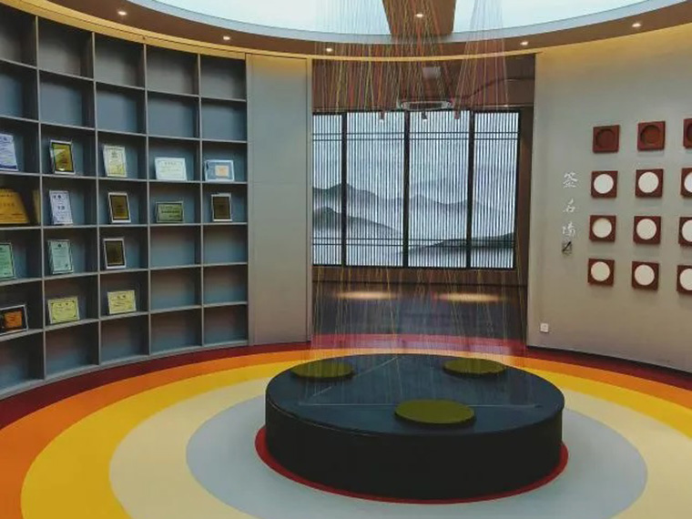 在隔出來的弧形展廳,一面墻展示著企業(yè)獲獎(jiǎng)榮譽(yù)證書,一面墻是客戶的簽名展示區(qū)。