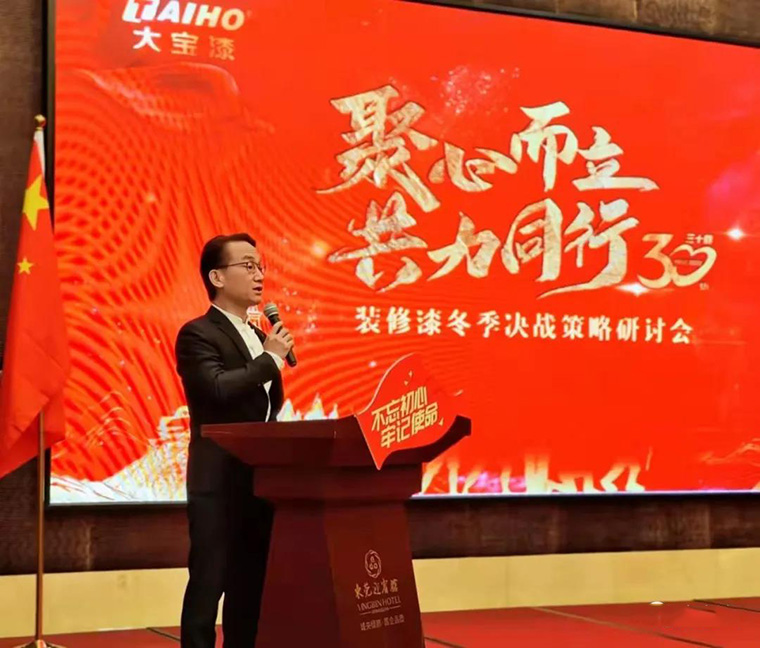 研討會(huì)在經(jīng)銷事業(yè)部副總經(jīng)理葉子琛的致辭中拉開序幕。葉副總表示,當(dāng)前的涂料市場,面對(duì)著后疫情經(jīng)濟(jì)放緩、結(jié)構(gòu)調(diào)整、原材料價(jià)格上漲等不確定因素,希望這場以延安精神為主題的冬季決戰(zhàn)策略研討會(huì)的召開,能夠賦能經(jīng)銷商應(yīng)對(duì)當(dāng)前市場面臨的新挑戰(zhàn),與大寶攜手面對(duì)行業(yè)新格局、共創(chuàng)輝煌未來。