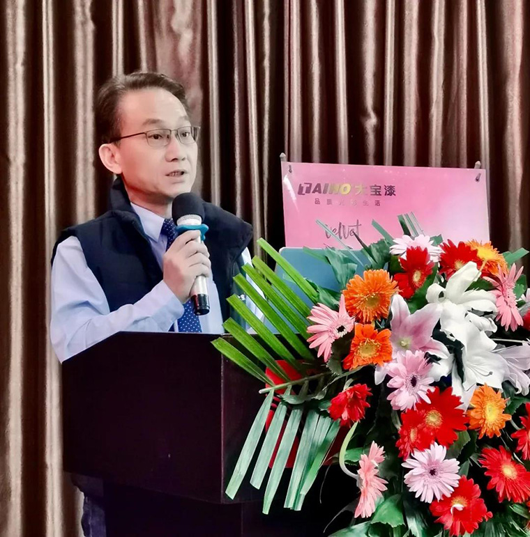 經(jīng)銷事業(yè)部葉子琛副總經(jīng)理在致辭中,分析當(dāng)下涂料行業(yè)所面臨的問題和機(jī)遇,并對未來發(fā)展方向做出提示。葉副總說:從2019年上半年開始,大寶成功推出第一代仿石漆產(chǎn)品,兩年多來通過卓越的產(chǎn)品技術(shù)研發(fā)和涂裝工藝創(chuàng)新能力,如今已更新到第三代,這次主推富含中國文化的24節(jié)氣仿石漆第三代色卡,定會為美麗鄉(xiāng)村自建房外墻裝飾市場賦能。