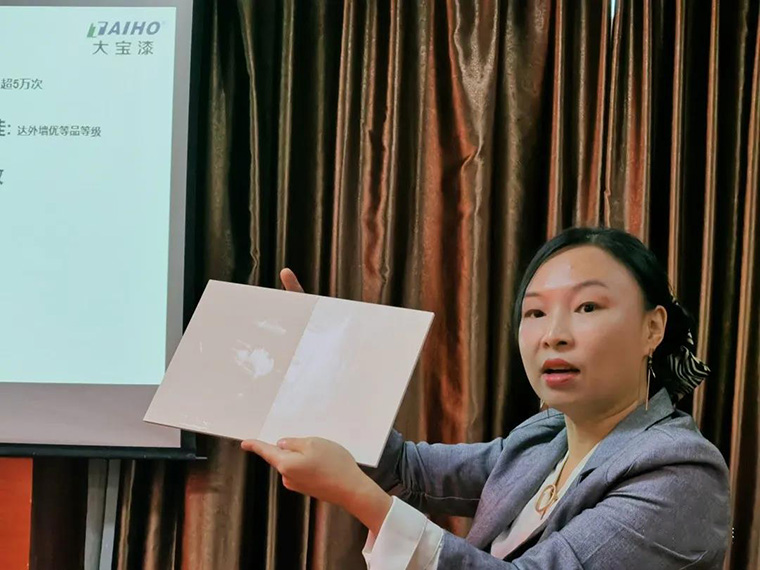 在進(jìn)口品牌荷蘭高樂伯涂料(GLOBAL PAINT)產(chǎn)品介紹和技術(shù)交流環(huán)節(jié),培訓(xùn)學(xué)校夏秀麗老師對高樂伯品牌的發(fā)展、產(chǎn)品體系、歐洲環(huán)保認(rèn)證、產(chǎn)品體驗(yàn)、配套輔材等內(nèi)容穿插播放產(chǎn)品廣告片視頻,完整有系統(tǒng)地介紹高樂伯涂料的產(chǎn)品亮點(diǎn)和優(yōu)勢。