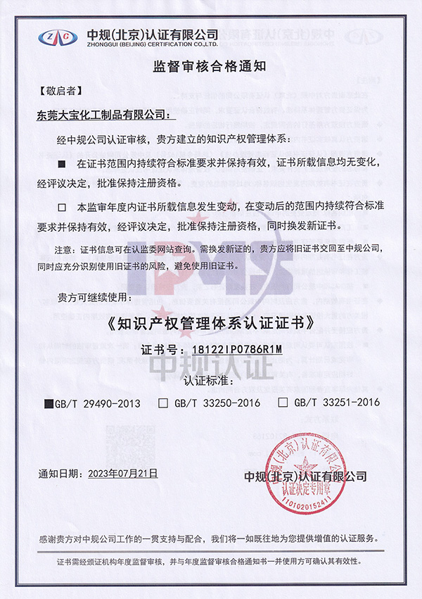 截至目前,東莞大寶化工制品有限公司已經(jīng)擁有數(shù)百項知識產(chǎn)權,自2022年以來,公司已累計新增專利申請10項與新增發(fā)表的國際學術期刊文章。