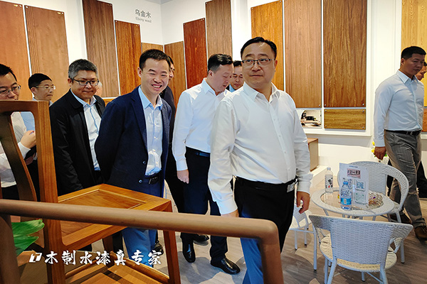 ▲南康區(qū)領(lǐng)導(dǎo)參觀大寶漆展館