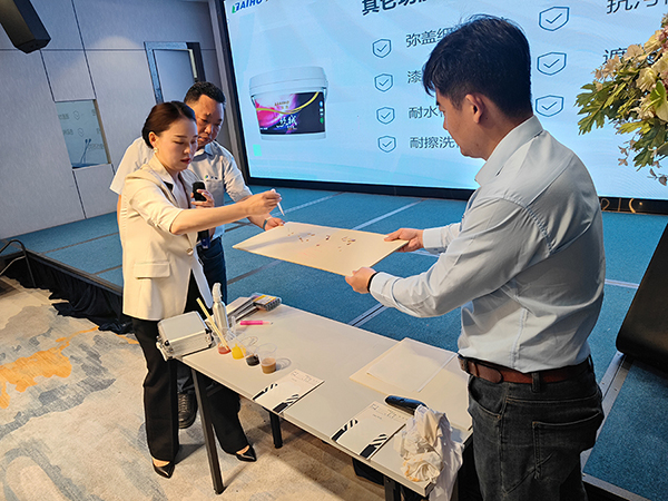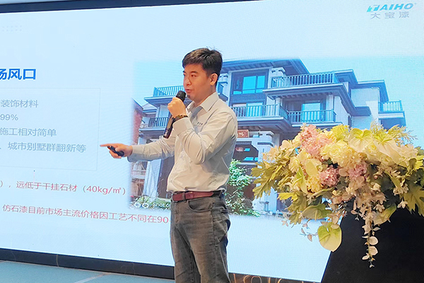 中南區(qū)業(yè)務主管卓杰分享2024 大寶仿石漆盈利模式和市場前景,詳細解讀大寶仿石漆特點和優(yōu)勢,引起與會者對于產品的興趣和關注,為產品的推廣打下了良好的基礎。