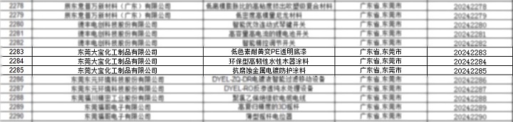 近日,廣東省高新技術(shù)企業(yè)協(xié)會正式公布了2024年廣東省名優(yōu)高新技術(shù)產(chǎn)品名單。大寶漆的三款產(chǎn)品——低色素耐黃變PE透明底漆、環(huán)保型高韌性水性木器涂料和抗腐蝕金屬電鍍防護(hù)涂料成功上榜,彰顯了企業(yè)在科技創(chuàng)新和產(chǎn)品質(zhì)量方面的卓越實(shí)力。