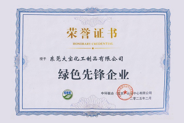 2025年3月20日,在廣東珠海舉行的中環(huán)聯(lián)合認(rèn)證中心重點(diǎn)客戶交流會(huì)上,東莞大寶化工制品有限公司憑借在綠色低碳領(lǐng)域的卓越表現(xiàn),榮獲“綠色先鋒企業(yè)”稱號(hào),彰顯了其在可持續(xù)發(fā)展方面的領(lǐng)先實(shí)力。