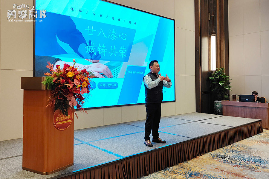 經(jīng)銷事業(yè)部副總經(jīng)理葉子琛在開場(chǎng)致辭中指出,當(dāng)下市場(chǎng)如同風(fēng)云驟變、波濤洶涌,唯有保持“泰然自若”的心態(tài),方能穩(wěn)中求進(jìn)、應(yīng)變致勝?!坝屡矢叻濉辈粌H是一句口號(hào),更是一種從容進(jìn)取、不懼挑戰(zhàn)的精神指引。