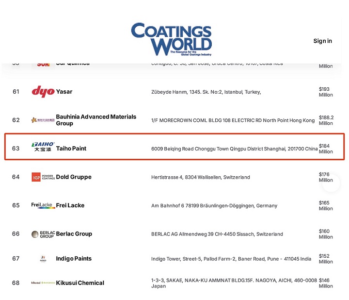 近日,美國權(quán)威雜志《涂料世界》(Coatings World)發(fā)布了2025年全球頂級涂料企業(yè)排行榜。作為中國涂料行業(yè)的優(yōu)秀企業(yè),大寶漆憑借卓越的產(chǎn)品品質(zhì)和持續(xù)創(chuàng)新能力,再度上榜。