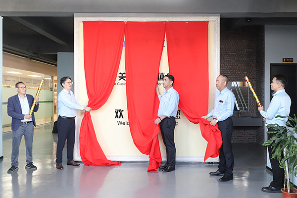 活動伊始,在全體與會人員的共同期待下,張正賢總經(jīng)理、周志鴻副總經(jīng)理與葉小兵營銷總監(jiān)共同為全新展廳揭幕。