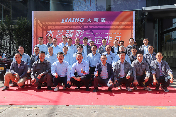 11月5日,大寶漆順德·龍江全新高定涂裝工藝展廳盛大啟幕?;顒右浴澳舅囌椴?高定非凡”為主題,大寶化工直銷事業(yè)部總經(jīng)理張正賢、業(yè)務(wù)一部副總經(jīng)理周志鴻、業(yè)務(wù)一部營銷總監(jiān)葉小兵以及順德辦全體業(yè)務(wù)與工程服務(wù)人員等,共同見證了這一服務(wù)升級的新里程碑。