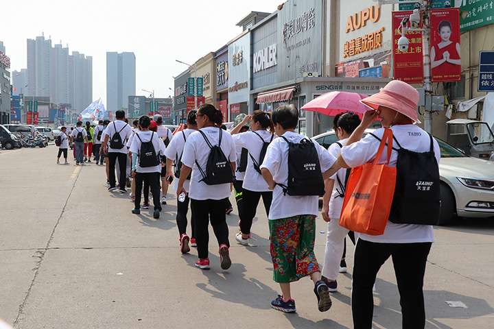 在工作人員的指引下,參賽隊(duì)伍高舉印有“大寶漆,品質(zhì)光彩生活”的旗幟徐徐前進(jìn),形成一道道亮麗的風(fēng)景線。長(zhǎng)長(zhǎng)的隊(duì)伍從起點(diǎn)出發(fā),沿途,大寶漆工作人員為參賽者準(zhǔn)備了飲用水補(bǔ)給,運(yùn)動(dòng)愛(ài)好者們一路走走拍拍,用腳步和汗水感受運(yùn)動(dòng)的樂(lè)趣。