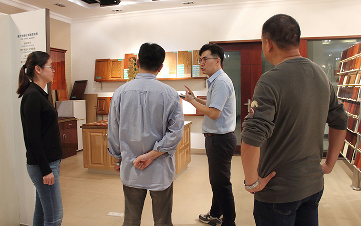 到訪領導一行還參觀了東莞大寶化工現(xiàn)代化的廠房設備、智能化涂裝線、一流的中央實驗室和展示家具漆產品完美施工效果的色板中心等地,增進了彼此的了解和進一步合作的信心。針對“油改水”問題,工作人員向參訪人員介紹了大寶漆水性漆的工藝和質量控制情況,詳細回答了馬總、李總一行對智能涂裝線的提問。考察人員對大寶漆先進的生產管理和環(huán)保理念給予了高度評價。