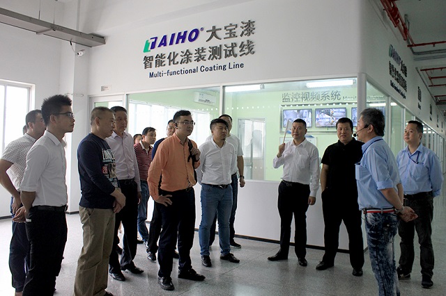 中國木門技術(shù)聯(lián)盟一行參觀大寶化工智能涂裝線