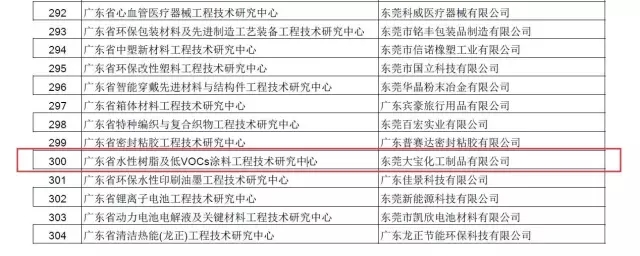 根據(jù)廣東省創(chuàng)新驅(qū)動(dòng)發(fā)展的指示,2016年,全省科技工作將由深入謀劃布局轉(zhuǎn)入全面推進(jìn)落實(shí)階段,全面深化科技體制改革,強(qiáng)化重點(diǎn)領(lǐng)域科技攻關(guān)和重大科技成果產(chǎn)業(yè)化,特別開展了“2016年度廣東省工程技術(shù)研究中心認(rèn)定工作”,鼓勵(lì)企業(yè)開展基礎(chǔ)性前沿性創(chuàng)新研究。東莞大寶化工依托涂料產(chǎn)業(yè)創(chuàng)新技術(shù)、專精的科研隊(duì)伍,為“廣東省水性樹脂及低VOCs涂料工程技術(shù)研究中心”在水性、環(huán)保涂料研發(fā)技術(shù)上的突破作出了特別貢獻(xiàn),獲得了廣東省科學(xué)技術(shù)廳特別認(rèn)定。