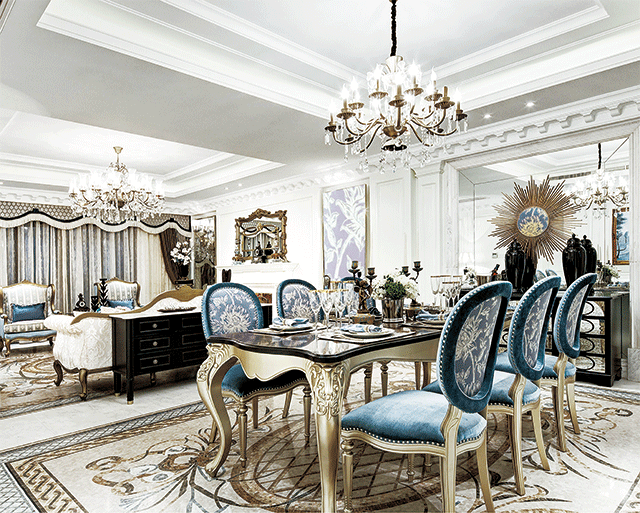 同時(shí),法式家居也常用洗白處理與華麗配色,洗白手法傳達(dá)出法式鄉(xiāng)村特有的內(nèi)斂特質(zhì)與風(fēng)情,配色以白、金、深色的木色為主調(diào)。結(jié)構(gòu)粗厚的木制家具,例如圓形的鼓型邊桌,大肚斗柜,搭配搶眼的古典細(xì)節(jié)鑲飾,再輔以優(yōu)質(zhì)環(huán)保的大寶水漆進(jìn)行養(yǎng)護(hù),呈現(xiàn)皇室貴族般的品味。