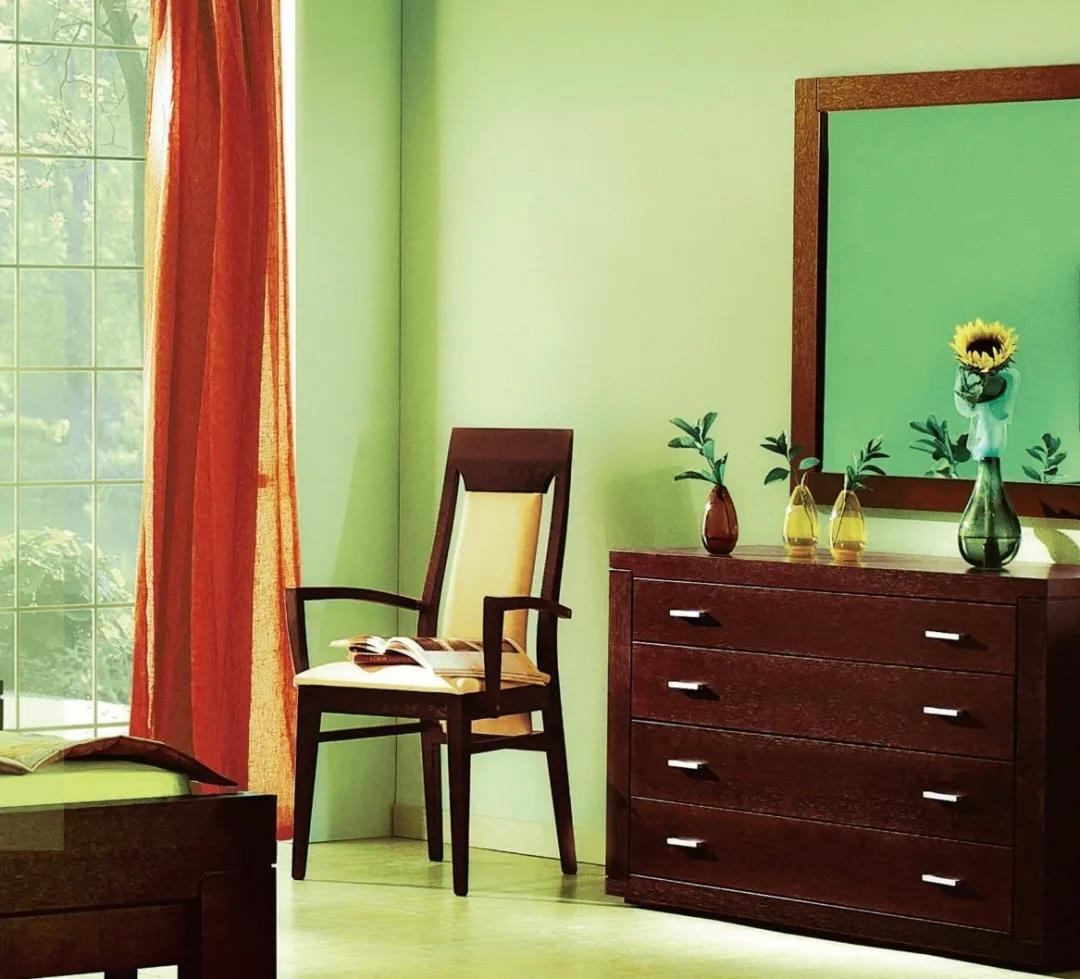 中綠色搭配深色木制家具,有效調(diào)節(jié)了整個(gè)居室環(huán)境的平衡感,讓整個(gè)房間煥發(fā)出生機(jī)活力。