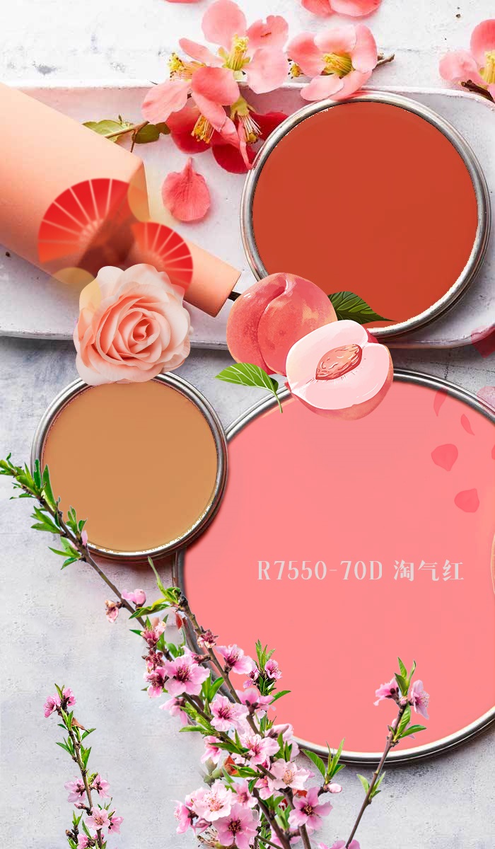 淘氣紅帶著白色的清新并結(jié)合紅色的溫暖,呈現(xiàn)出柔和與亮麗之間的平衡。命名來(lái)源于桃的顏色,這不僅是一種視覺(jué)上的聯(lián)想,亦是情感上的共鳴。桃子果皮的微微粉紅,讓人想到自然甜美與生機(jī)勃勃的春天,而“淘氣”則賦予了這一色彩更多的個(gè)性與靈動(dòng),既柔和又充滿活力。