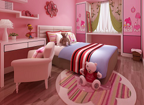 常用于兒童房或是喜愛粉色系的萌系少女,粉色可以帶來浪漫的情調(diào),但是久而久之,居住者會產(chǎn)生煩躁情緒,且顏色過于粉嫩單一,較不耐看,一陣子就會看膩了這樣的配色,